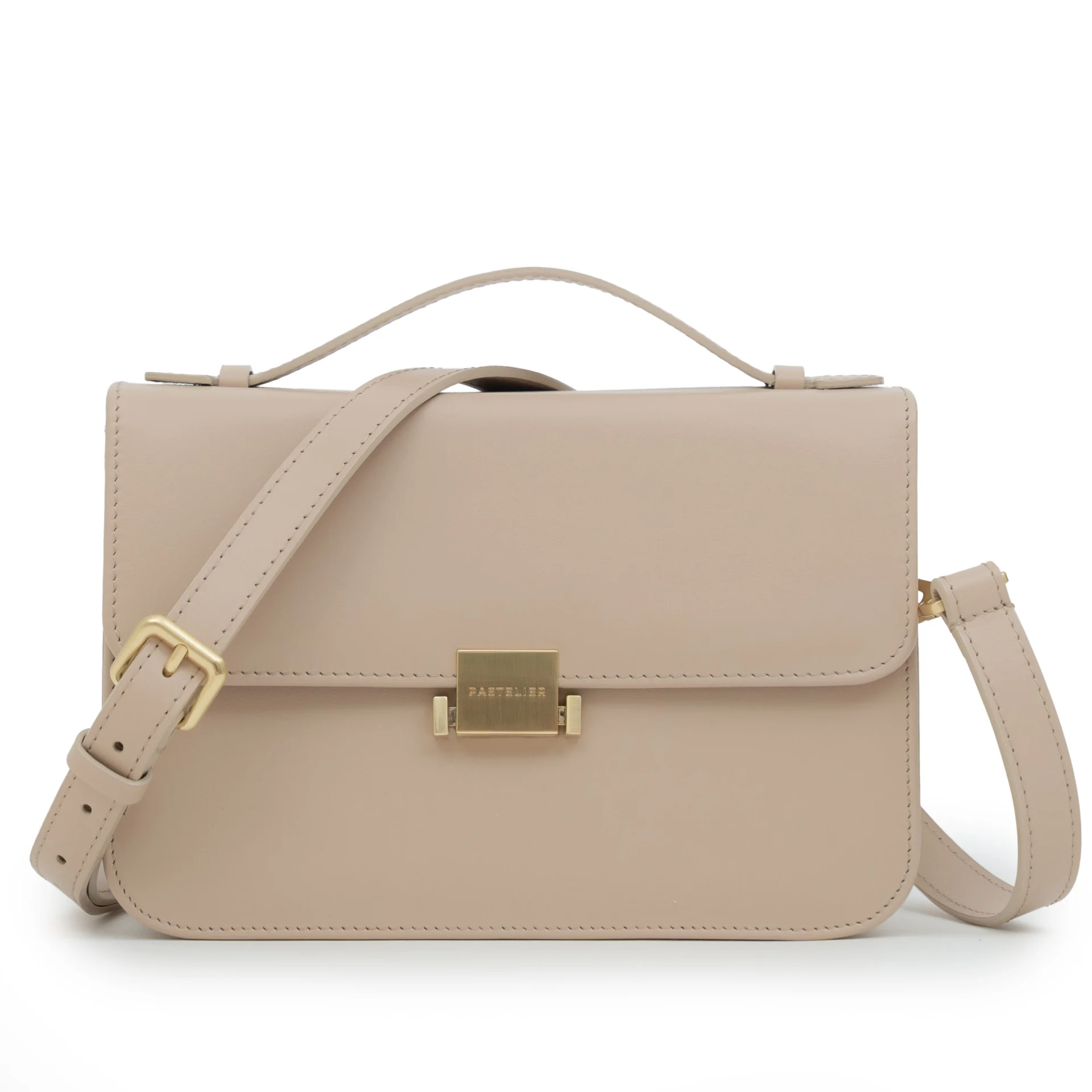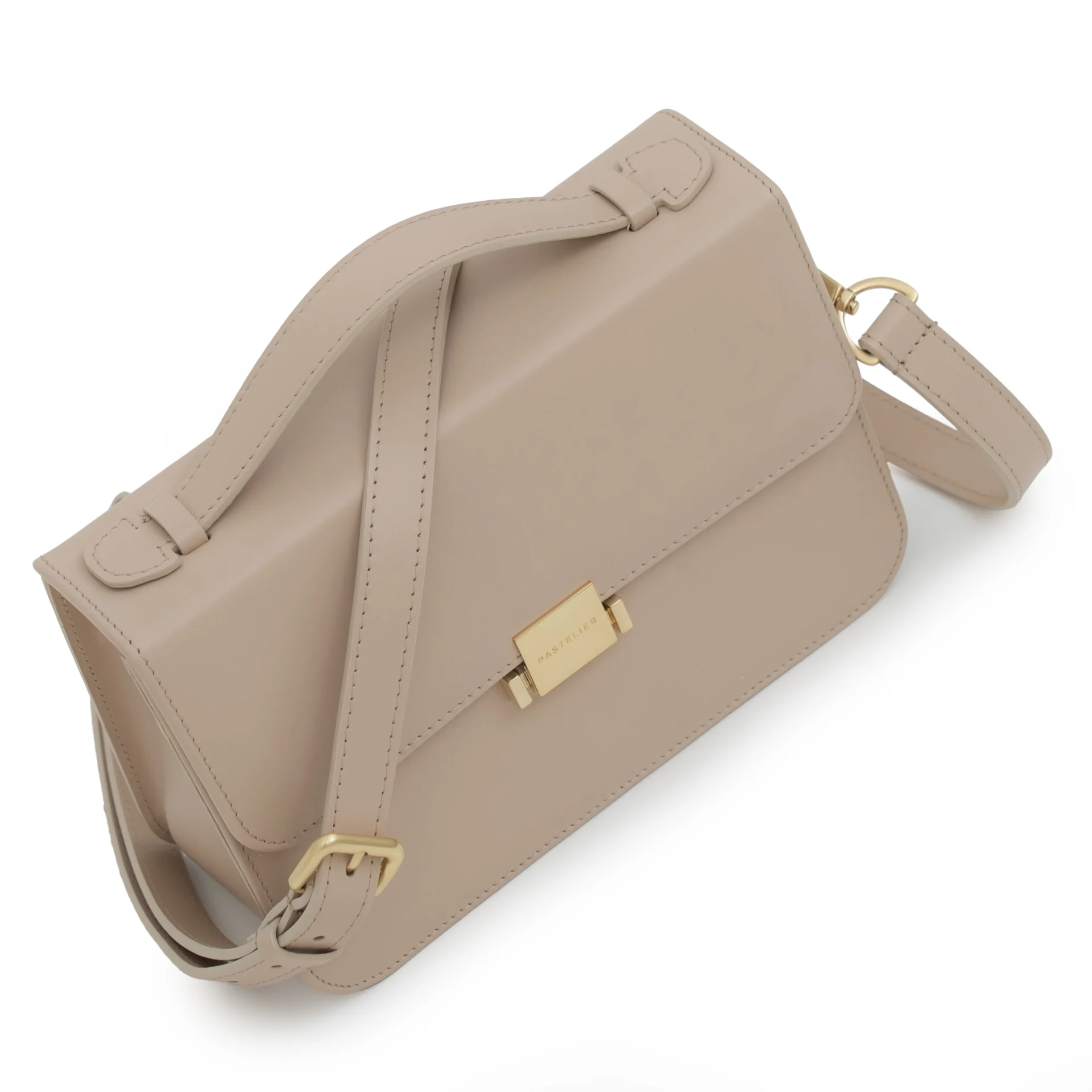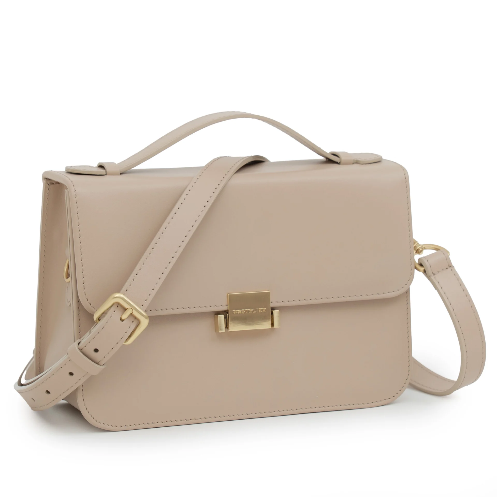 Materiał: licowa, włoska skóra naturalna Wykończenie w środku: materiałowa podszewka w odcieniu pastelowo-różowym z logotypem marki Okucia: szczotkowane szampańskie złoto Kolor: beż Wysokość: 16 cm Szerokość: 23,5 cm Głębokość: 9 cm Dł. rączki: 20 cm Dł. paska: 95-110 cm Gwarancja: 2 lata